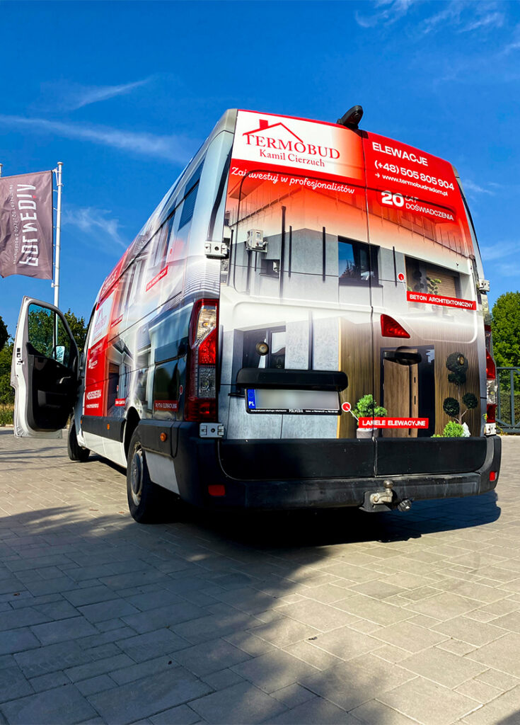 - Profesjonalizm: Firma przyjeżdżająca do klienta oznakowanym autem budzi natychmiastowe zaufanie.